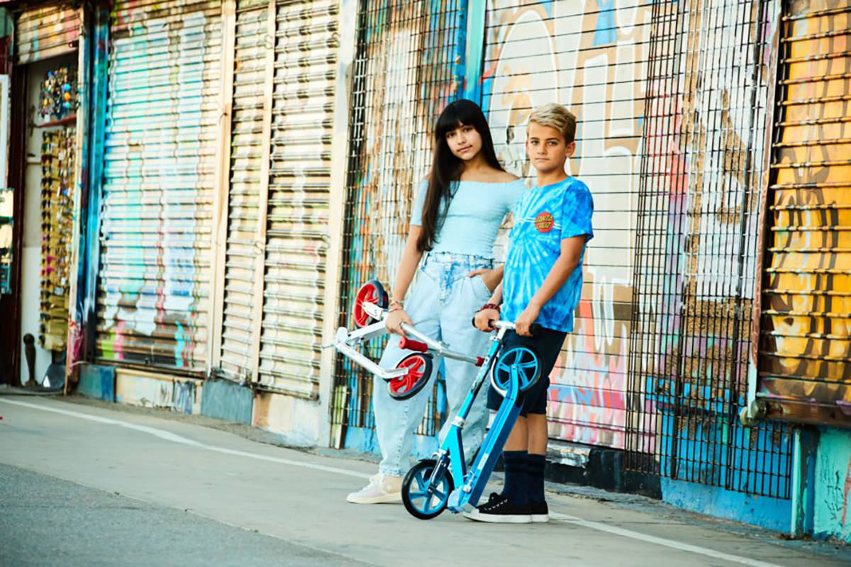 - Bold colors and attention-grabbing graphics on both handlebar and deck.