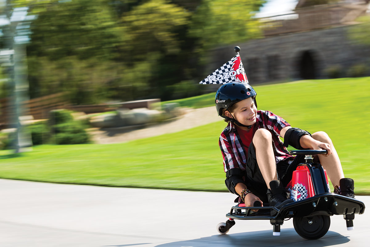 Drive, spin, or drift like a pro – at home! The Crazy Cart’s revolutionary Drift Bar design puts full control of drifts and spins directly in the driver’s hands. Drive like a traditional go-kart or lift the Crazy Cart’s Drift Bar to kick into Crazy Cart mode, allowing the Crazy Cart to drive and drift forward, backward, sideways, and everything in between! With driving abilities unmatched by any other vehicle before or since, the Crazy Cart is a revolution in go-kart design that you have to see in order to believe!