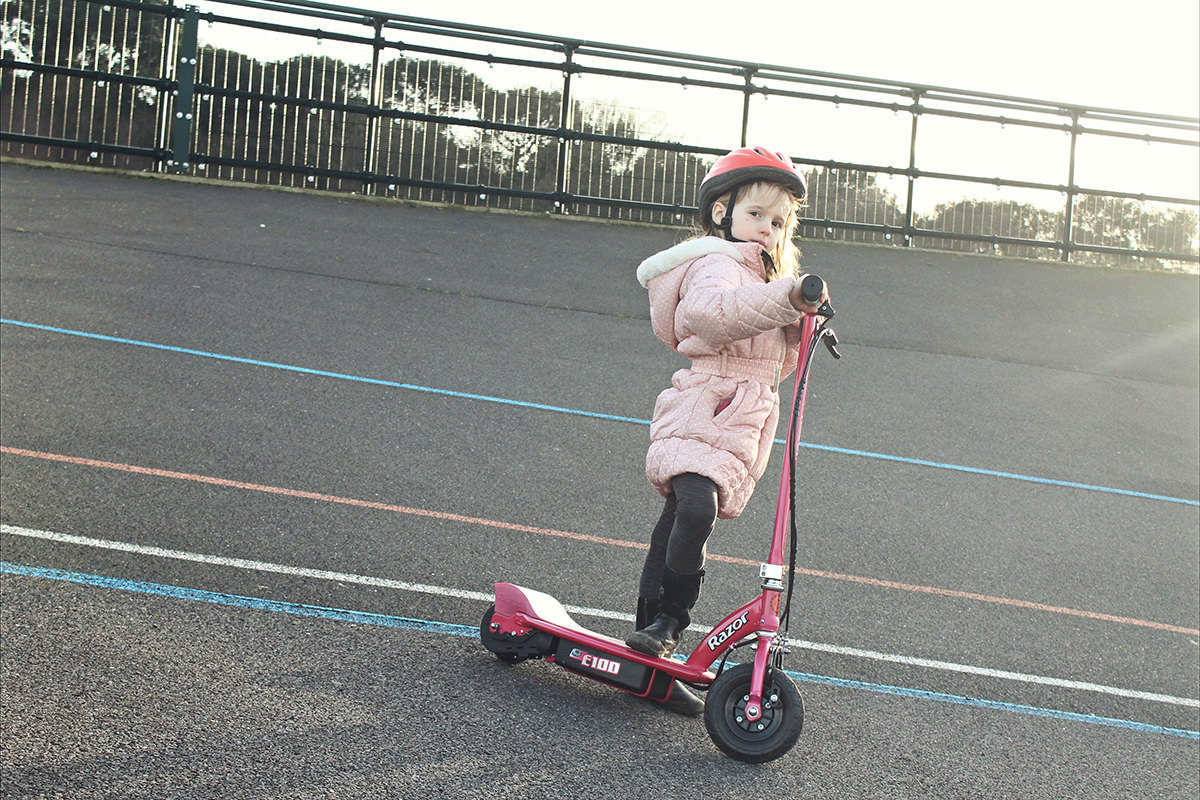 - With its kid-sized deck and frame, the Razor E100 electric scooter is the perfect introduction to electric-powered fun for riders ages 8 and up