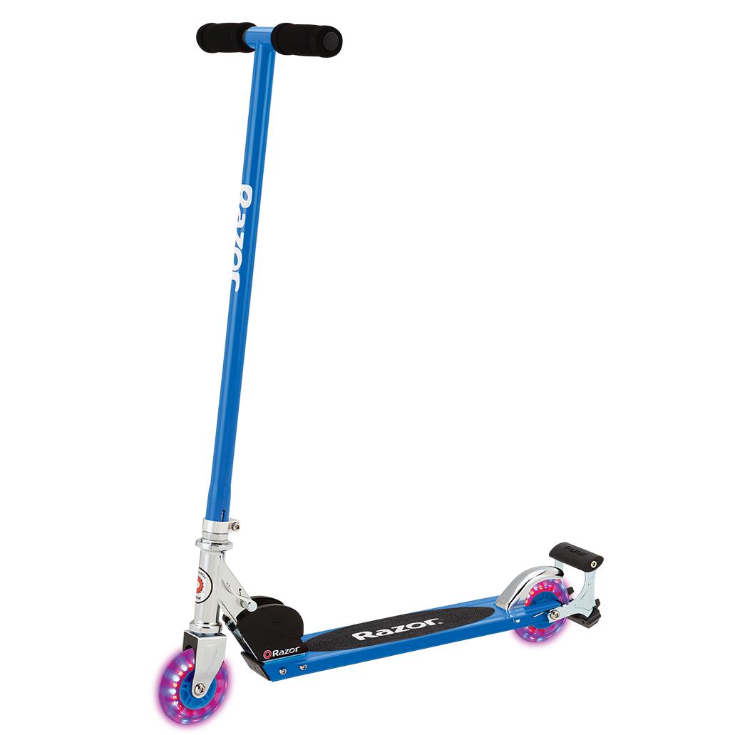 S Spark Sport scooter is made with durable single-frame design and features glowing Spark Bar and LED light-up wheels that kids love. Step on the Spark Bar to create localized sparks and watch the wheels glowing along with the flashing sparks. And the easy-folding mechanism makes it easy to take the glowing light show on the go. The grip tape on the aluminum deck helps to keep your feet securely in place and the rear-fender brake provides an easy way to slow down and stop. No assembly required, ready to ride out of the box, just unfold the S Spark scooter and you’re ready to go!