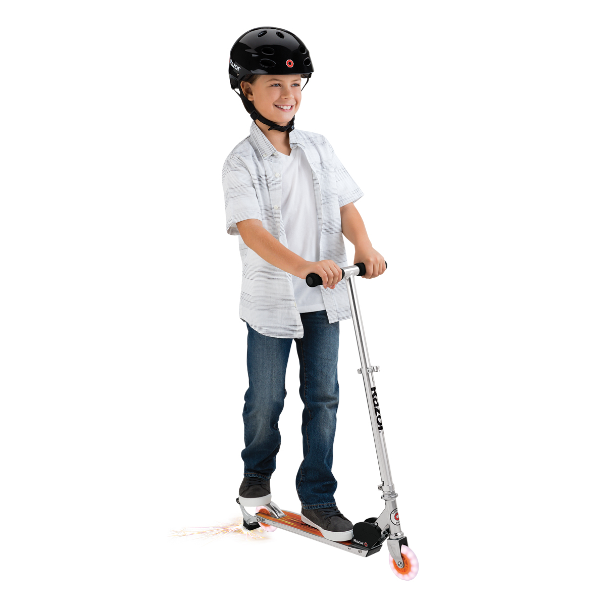 The Spark Ultra is taking light to new heights with its ultra-bright LED wheels, the brightest of any scooter in the Razor lineup. The steady white glow sets the stage for the bright flash of sparks from the Spark Bar.